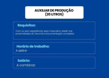Operador de Produção – Primeiro empregoJovem AprendizAlimentador de ProduçãoAlmoxarifeFerramenteiroOperador revisorTécnicoEncarregado de Linha de ProduçãoAnalista de Qualidade Está procurando uma vaga de emprego, mesmo sendo empregado procura um novo emprego? Ou ...