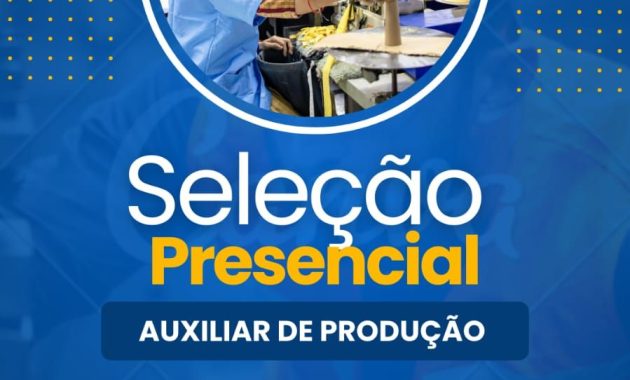 Estamos realizando seleção presencial para a vaga de Auxiliar de Produção.