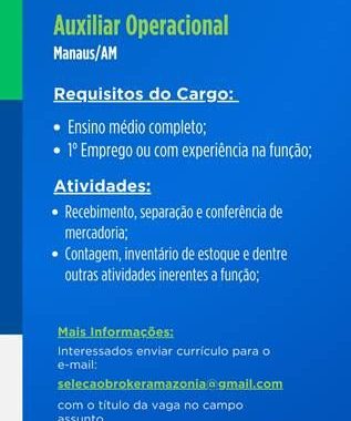 Broker da Amazônia está selecionando Auxiliar operacional; Envie seu currículo!
