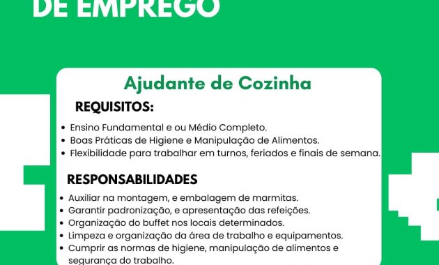 Empresa está selecionando Ajudante de cozinha; Envie seu currículo!
