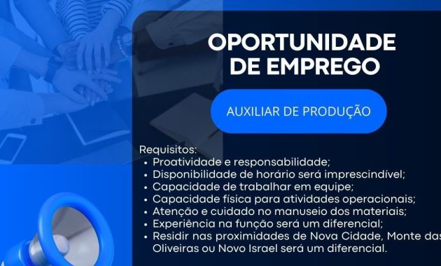 Empresa está selecionando Auxiliar de produção; Envie seu currículo!