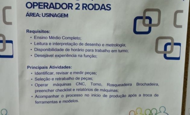 Empresa de grande porte está selecionando Operador de produção polo de duas rodas; Envie seu currículo!