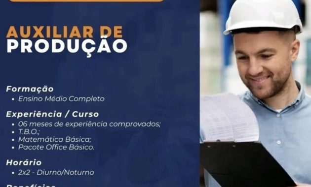 Empresa está selecionando Auxiliar de produção; Envie seu currículo!