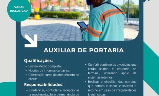 Super Terminais está selecionando Auxiliar de portaria; Envie seu currículo!