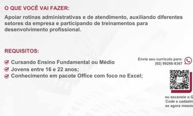 O processo seletivo para esta(s) vaga(s) não cobra absolutamente nada pela sua candidatura. Portanto, jamais aceite qualquer tipo de cobrança para cadastrar seu currículo.