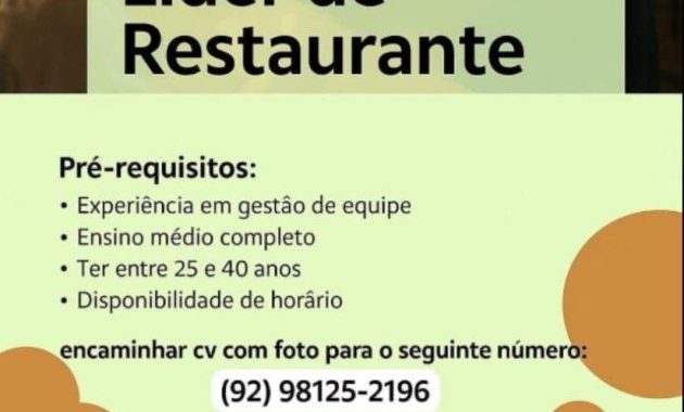 Empresa está selecionando Líder de restaurante; Envie seu currículo!