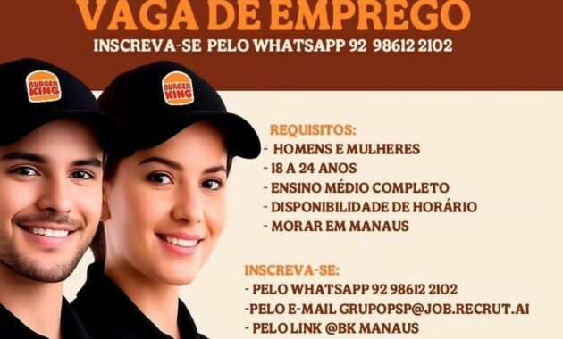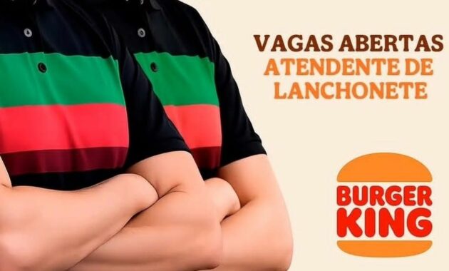 Burger King está selecionando Atendente de lanchonete; Envie seu currículo!