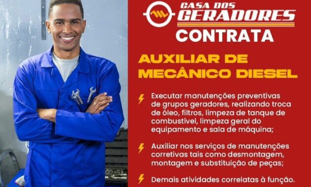 Casa dos geradores está selecionando Auxiliar de mecânico a diesel; Envie seu currículo!