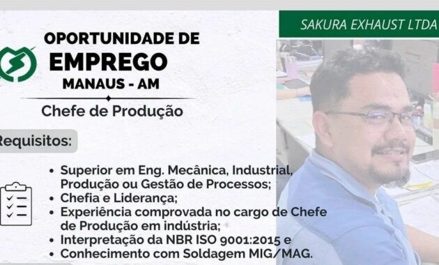 Empresa Sakura Exhaust abre seleção para vagas de emprego para seu setor de produção; Envie seu currículo!