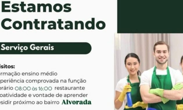 Restaurante está selecionando Auxiliar de serviços gerais; Envie seu currículo!
