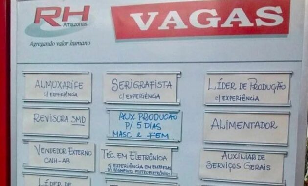 O RH Amazonas, empresa especializada em recrutamento e seleção, anunciou a abertura de diversas oportunidades de emprego na capital amazonense. A consultoria busca conectar profissionais qualificados a empresas que necessitam de talentos para fortalecer suas equipes em variados setores.