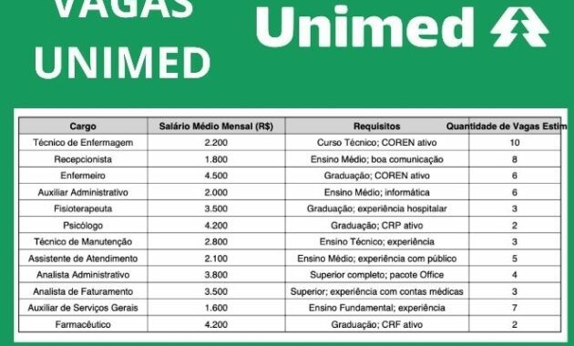 A Unimed costuma oferecer um ambiente voltado ao cuidado com as pessoas e ao desenvolvimento profissional. A empresa também incentiva a diversidade e mantém processos seletivos abertos para diferentes perfis de candidatos.
