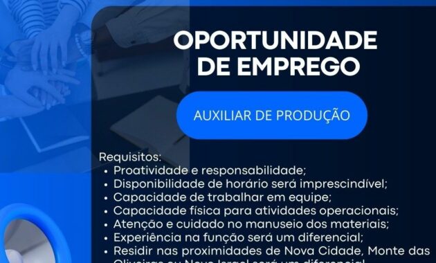 Empresa está selecionando Auxiliar de produção; Envie seu currículo!
