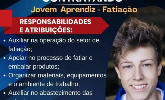 A oportunidade é ideal para quem busca o primeiro emprego, pois o programa foca no aprendizado. O programa Jovem Aprendiz é regulamentado pelo Ministério do Trabalho e Emprego, garantindo direitos e proteção ao jovem trabalhador.